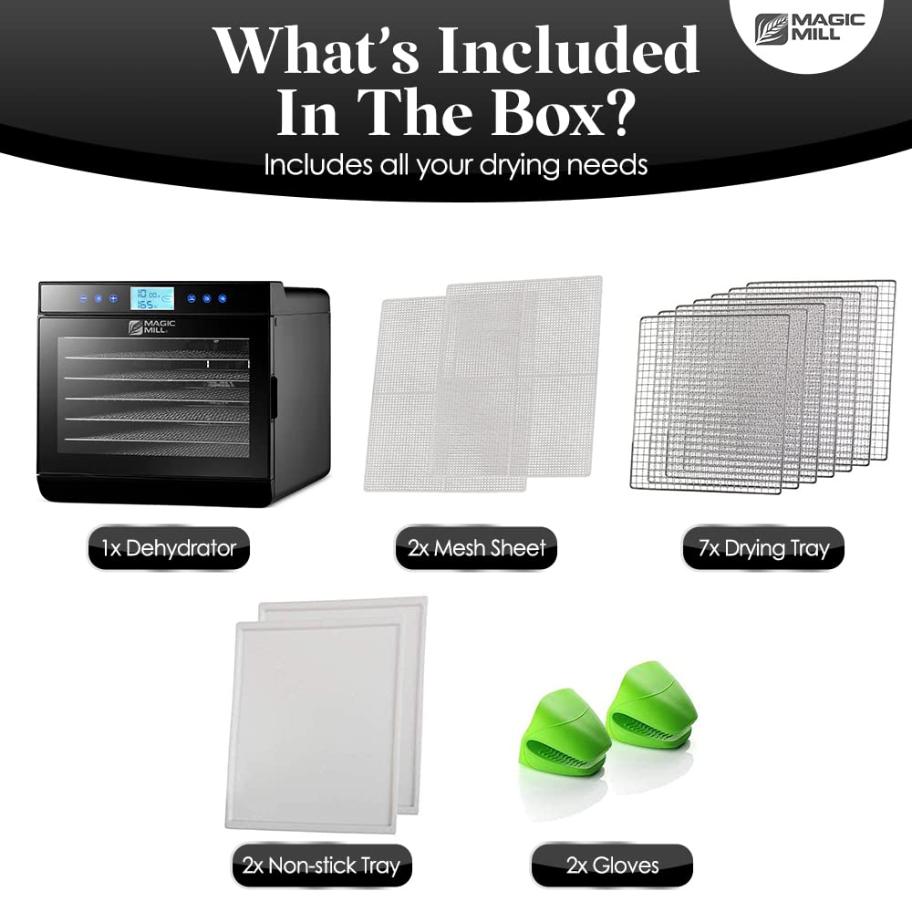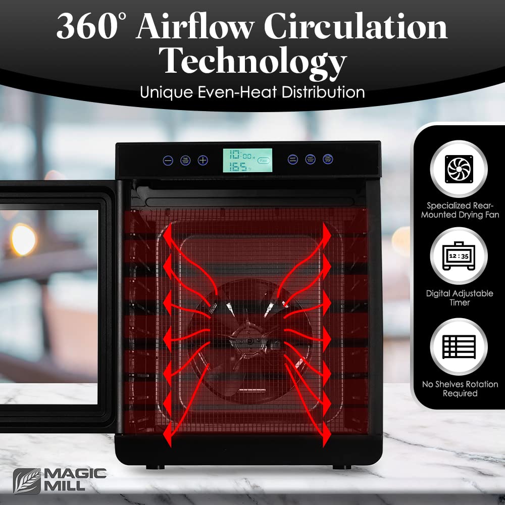 Magic Mill Food Dehydrator Machine - Easy Setup, Digital Adjustable Timer, Temperature Control | Keep Warm Function | Dryer for Jerky, Herb, Meat, Beef, Fruit and to Dry Vegetables