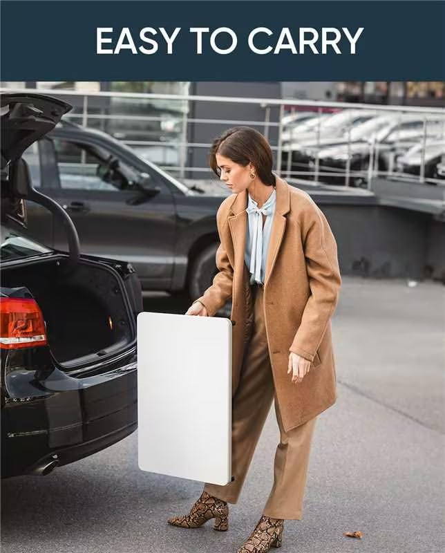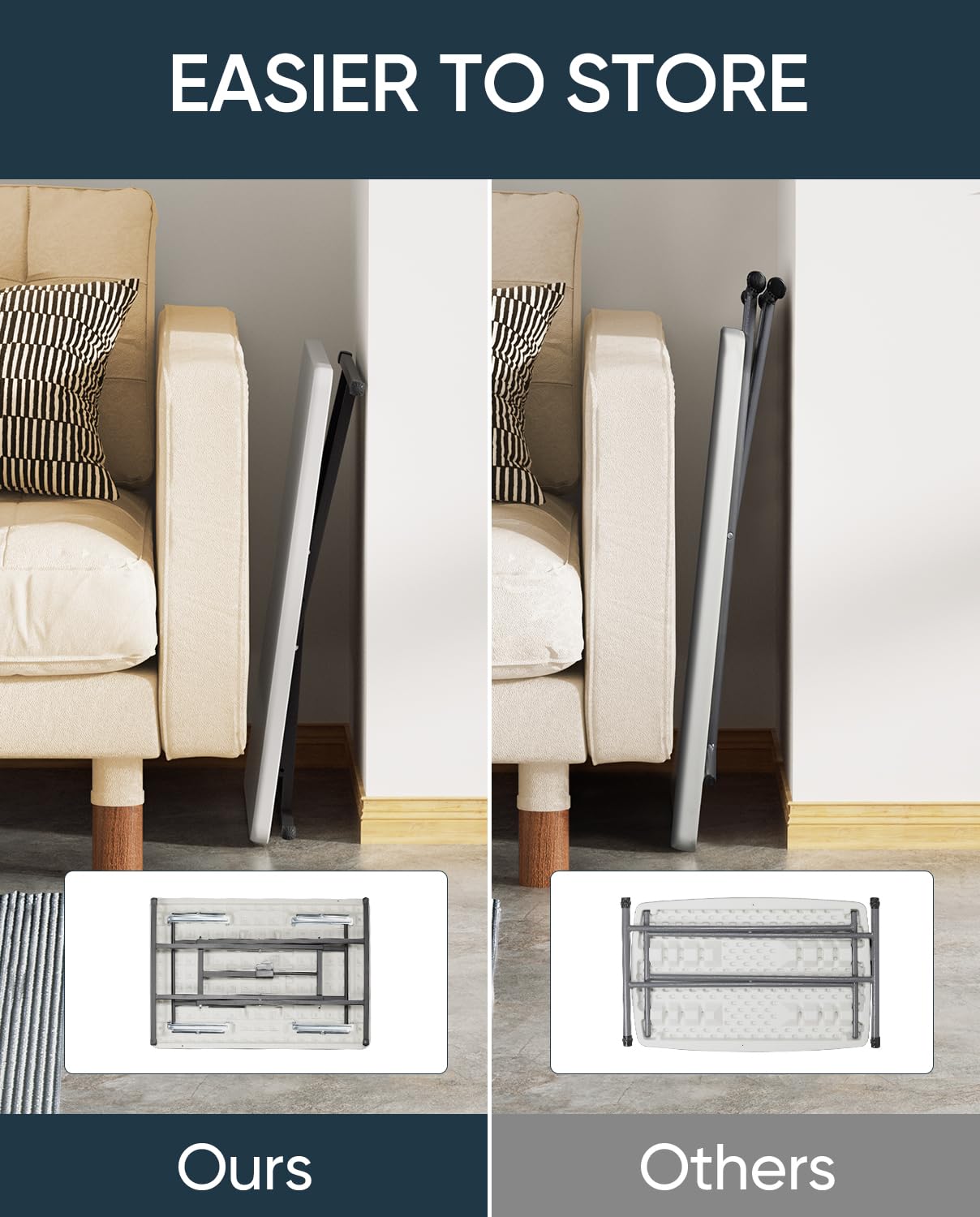 - Portable & Easy Storage: Folding table ready to use out of the box, no assembly required. 11LBS Lightweight design folds flat for easy transport, storage and outdoor taking. Folded Dimensions: 28x20x3 In. creating more room for other activities or furniture.